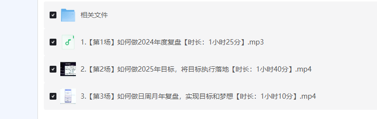├── 1.【第1场】如何做2024年度复盘【时长:1小时25分】.mp3