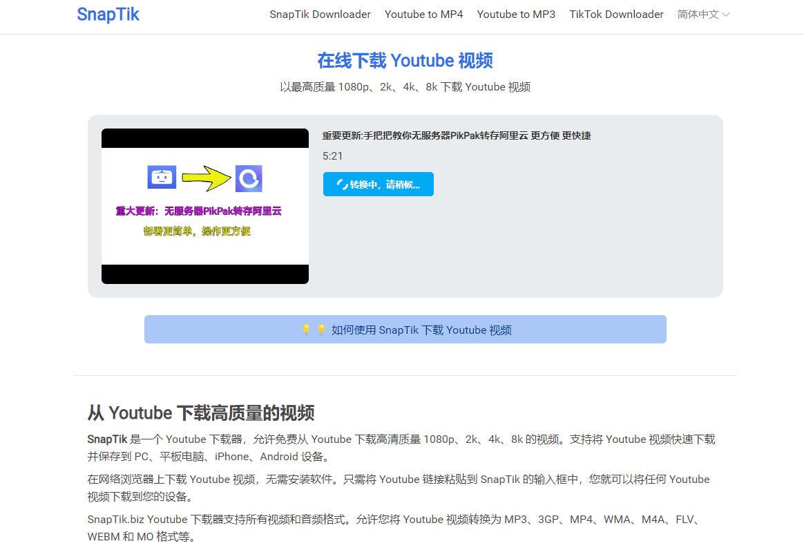 【SnapTik-在线视频下载器 支持4K 8K视频下载】