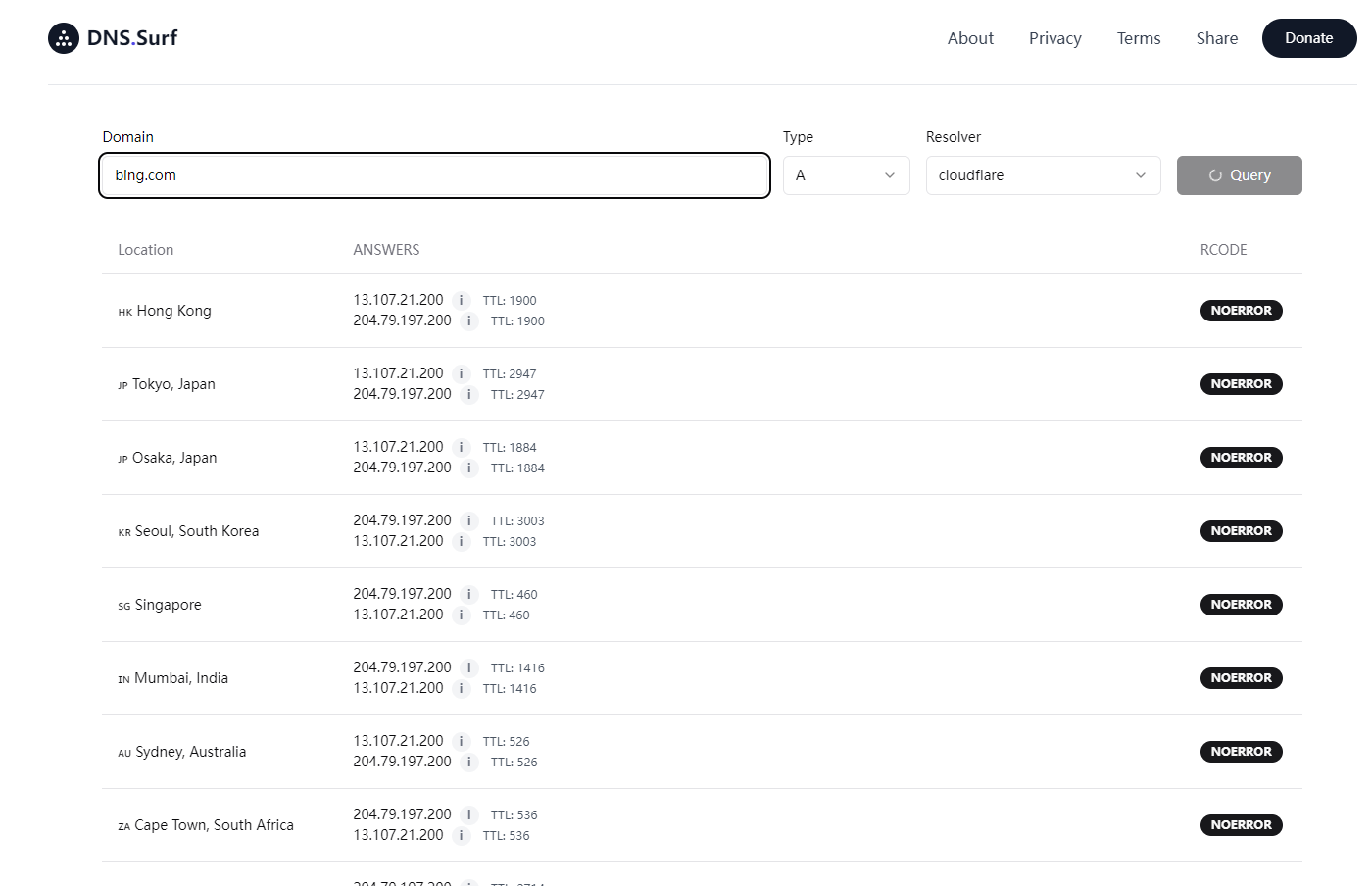 【dns surf 免费免登录在线多地DNS解析工具】 some 收录于 网站收藏 2024-07-17 约 84 字 预计阅读 1 分钟 目录 介绍 资源 介绍 这是一个用来查询一个域名在世界各地的 DNS 解析结果的工具,无需登录可以免费使用。 支持全球18个地区的查询 支持100+个dns解析结果 100%运行在Vercel上 资源 官网